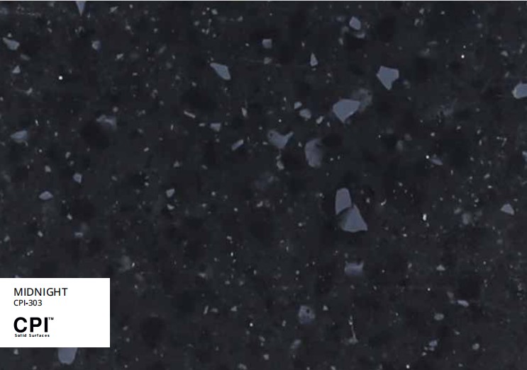 MIDNIGHT CPI-303 presents a rich, dark hue with subtle undertones, mimicking the deep serenity of the night sky. This elegant solid surface offers a bold, sophisticated appearance that makes it perfect for modern and luxury designs. With its durable and easy-to-maintain finish, MIDNIGHT is ideal for a variety of applications, including countertops and backsplashes, adding a touch of timeless elegance to any space.