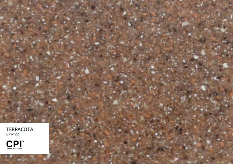 Terrracota CPI-122 is a product from the CPI™ brand, identified as part of their “salt surface” collection. The name evokes a warm, earthy orange-red hue, reminiscent of traditional baked clay. This specific variant is designed for use in creating durable and visually distinct solid surfaces.